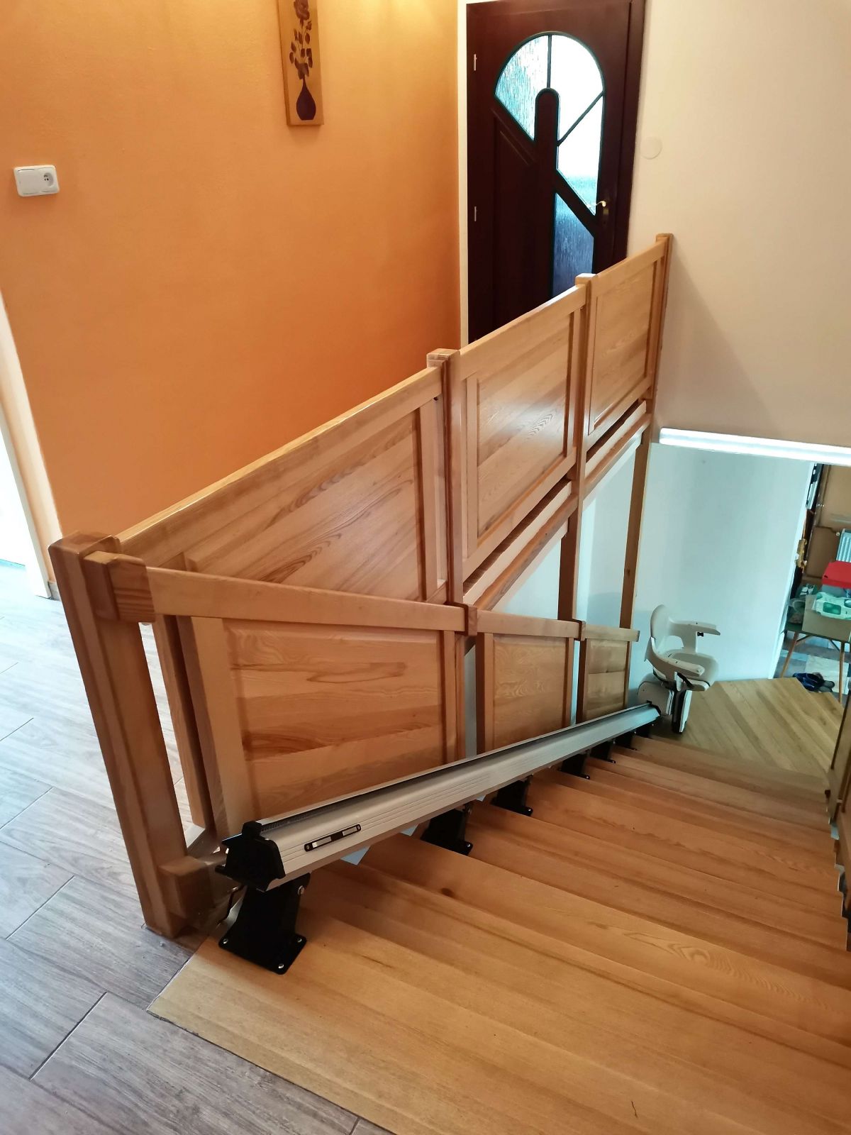 Instalací sedačky HOMEGLIDE jsme naší klientce umožnili opět se volně pohybovat po celém domě. Kotvení dráhy sedačky bylo v tomto případě velmi jednoduché a rychlé, pro tento způsob jsme použili ocelové vruty.