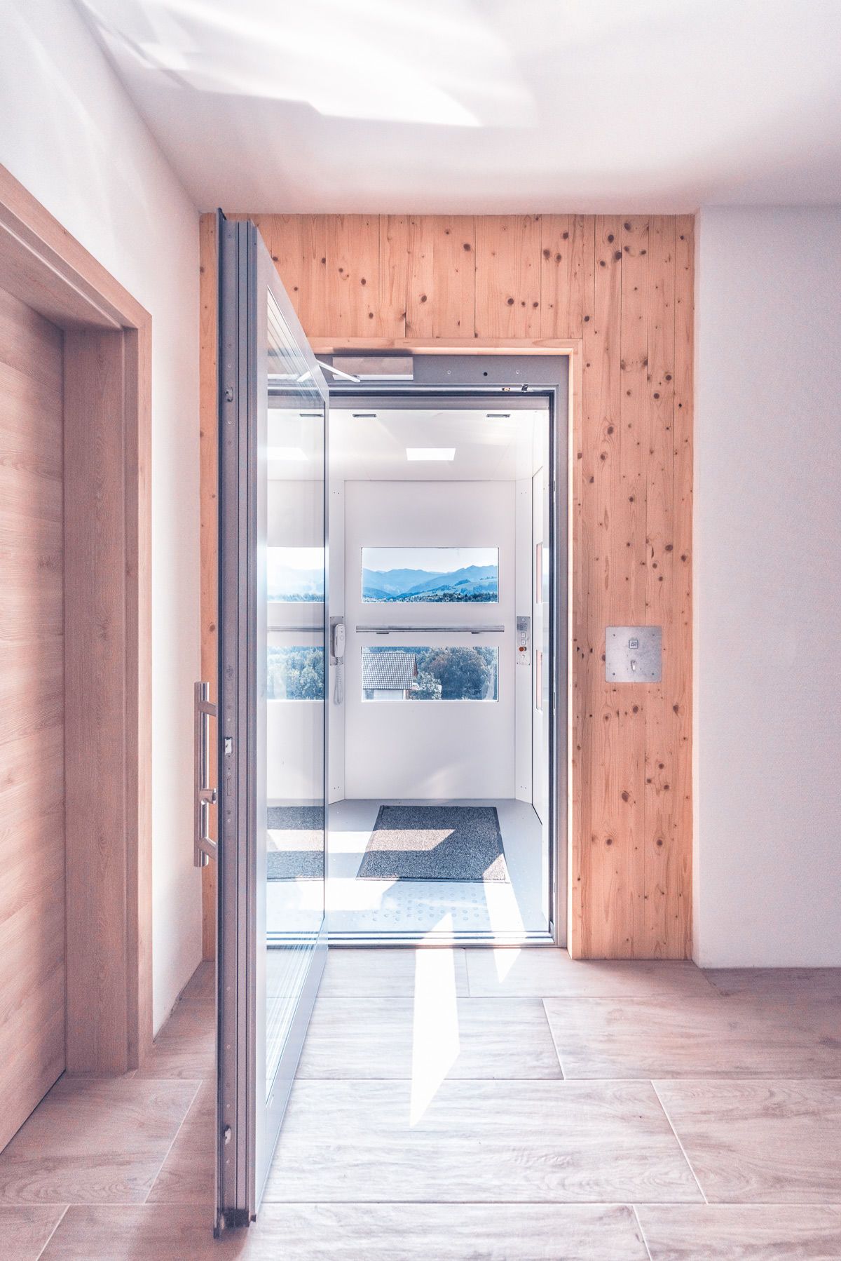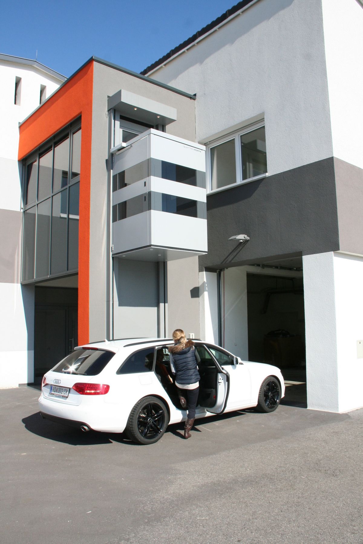 Výtahová plošina QuattroPorte se neumisťuje do zděné šachty, ani do ocelové konstrukce. Pojezdové kolejnice jsou kotveny do stěny, ve které se pouze vytvoří otvory pro osazení dveří. Prostor pod kabinou tak zůstane volný a můžete ho nadále využívat. K flexibilitě přispívá také možnost namontovat dveře všemi směry.